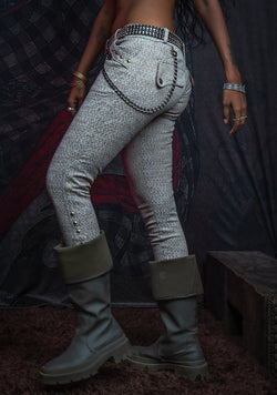 Long Fitted Pants Woman Piratesse / Stretchy Japanese Jaquard - SAND SNAKE